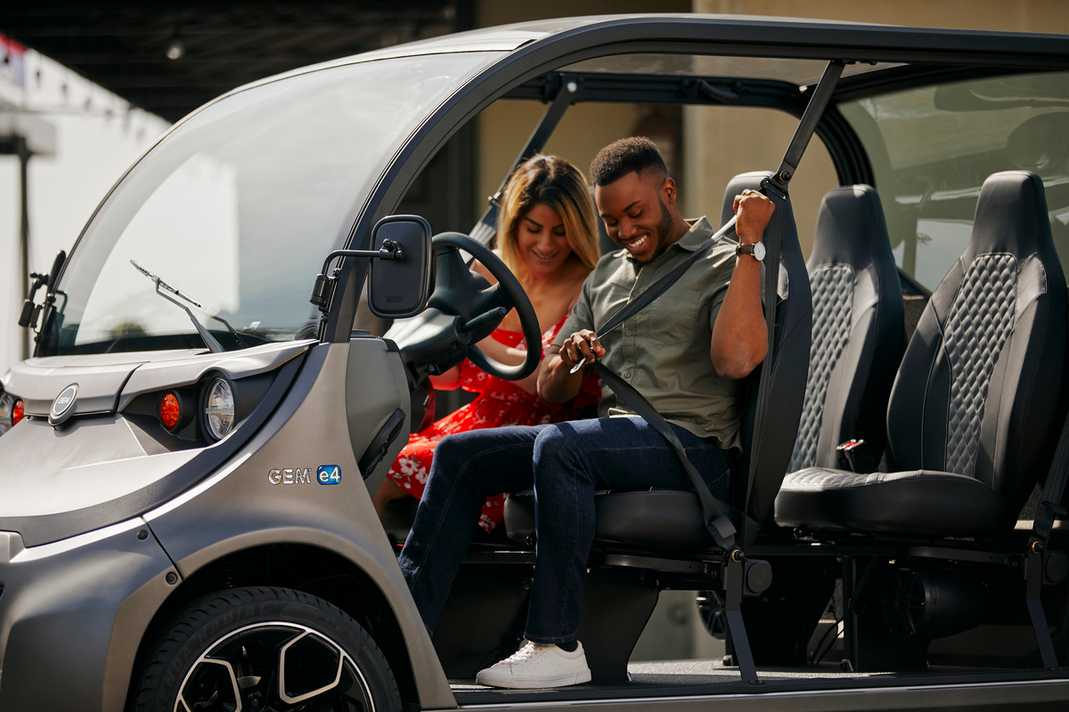 - GEMs are comfortable to ride with performance seats, 43” of available legroom and spacious cabs with enough room to seat a 6’ 8” passenger.